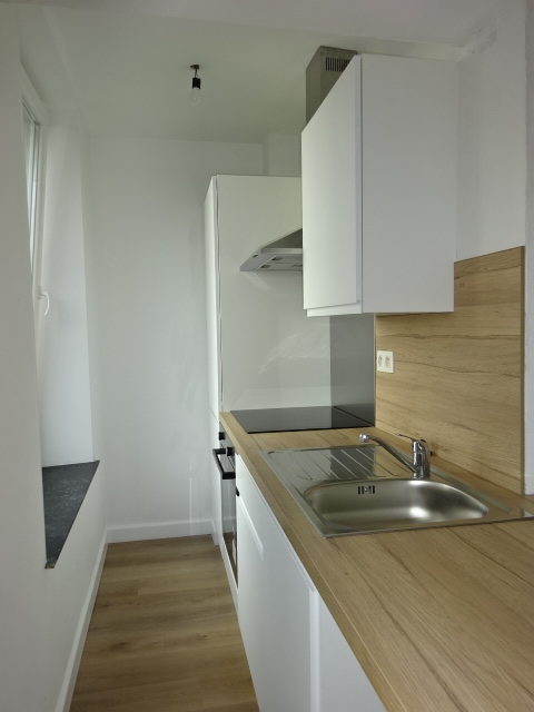 Appartement dans un immeuble à appartements avec séjour-salle à manger, cuisine semi-équipée neuve, salle de bain et 2 chambres. Châssis double vitrage, compteur bihoraire. Chauffage central au gaz. Visite sur RDV